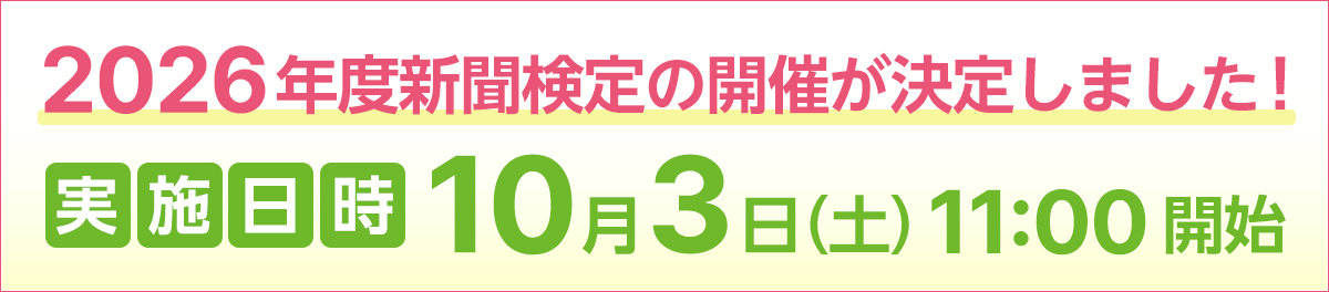 | 検定内容 | 2025年に発行された新聞から出題いたします。 ● 新聞から情報を正しく読み解く力 ● 視野を広げてものを見る力 ● 自分の考えを正しく伝える力 |